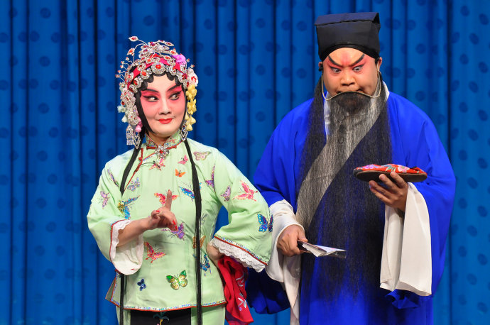 予入座时见看客不少,前排茶座多是业界人士,一众老友伙伴,纷致招呼,俨然同学会。果然不少中国戏校校友,也为主演助阵。至于主演秦雪玲者,中国戏校坐科,问师永玲陈氏,艺有荀筱处。予不曾见过明场台上,只在舞台录像中见过,如戏凤、乌龙院、五花洞乃至荷珠配等,彼时扮相正美,明眸善睐,而去花旦之俏皮,泼辣旦之刁钻,亦有声色。见之则以乌龙院版本为多,而有稍近时代之作,也是十几年前录制。至于秦氏之艺事,则是见一篇文章记录,才知其始末由来。印象深者,作者记其“眼睛会说话”为特点,近而立年时恢复“跷功”补身高不足,中年时拼得“梅花”,等等。予年轻时曾见彼时一青年艺员于小剧场贴乌龙院,踩跷而出,亦号称宗筱学陈,尚觉新奇而“破天荒”,后知秦氏事迹,更有前朝故事之感。如今当年艺员已是“青年领军”,而又逢秦氏登台,因缘即会。