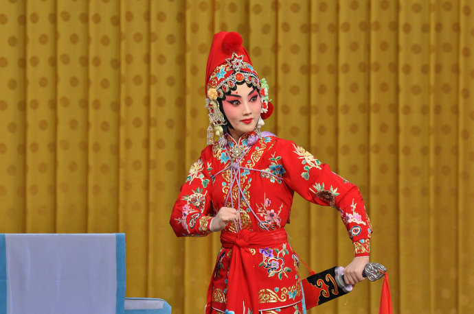 头折《打杠子》,小丑小旦玩笑戏也,也是老戏。丑角则是国戏教员刘宸,刘本人憨态可掬,玩意算纯熟,台缘不小。戏则经国戏整改,不知风格变动多少。丑角戴鬃帽,着布箭衣,倒拖杠子而上,一段白口述自己好赌夜游,中间述及求援于舅,分饰甥舅二人,间以保定白学其舅。后上村妇,梳大头穿裙袄,提小灯笼,脚下上跷。丑角出而剪径,两头害怕。丑角以竹杠为挟,迫旦角脱去衣裙卸去金莲,期间二人白口逗哏,唱以“南锣”腔,旦角不忘几处亮跷,都是关节。转而旦角计赚杠子入手,反制丑角。丑角以摘帽去髯,脱衣扒裤,描摹混子窘态。先前于剧场、荧屏见刘演过两次,总觉笑则笑矣,层层扒去衣裤,未免过于暴露“小鲜肉”,怎奈连央视直播均无大碍,此番又有“空剧”录像,也就是了。好在艺员台缘不小,台下“脱”声连连,也就如此“刺激”。旦角前后两次明场均为国戏教员李老师,扮相清秀,眼能做戏,上跷后也显挺拔,戏尾扛杠碾步而下。