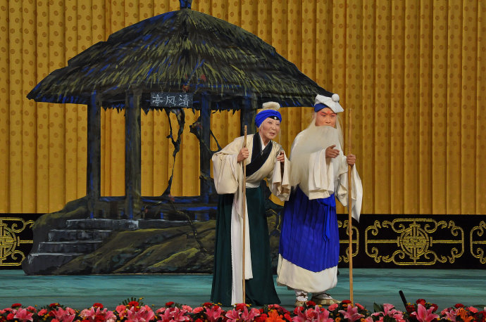 倒二折《清风亭》“思子、望子”,本是二马久为合作戏目。马氏初在他班学老旦后转富社,有老旦底子,搭班时亦能唱老旦角色,今时仍可听到其探母太君、戏妻秋母唱念。此场却是战友团改编本《清风亭》,穿插于丑角大会。开场起配乐,老旦出而大唱一段。近世女老旦皆出自李金泉体系,李尚出于旧戏基础,而后学也都《李逵探母》之李母风格。待朱宝光上,才念“哭相思”引,与旧本相近,只戏情改为自外而归,而非才起。老夫妻怄气拌嘴打架,词句有改动,后面望子,基本遵老路。只身上做派,种种做戏,全无二老枯灯近干之态,大料后学改编老戏,多通此病,所谓功力不够表演来凑。