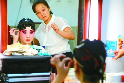 国家京剧院二团演员查思娜为演出做准备。