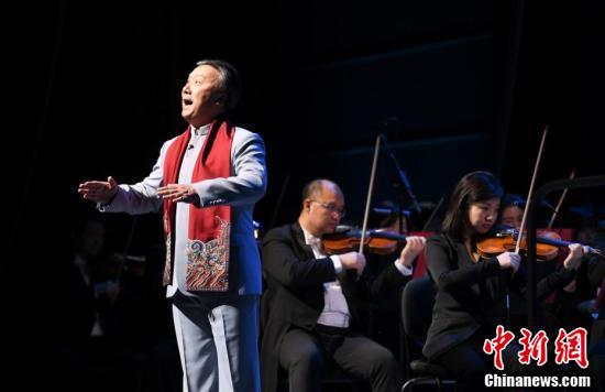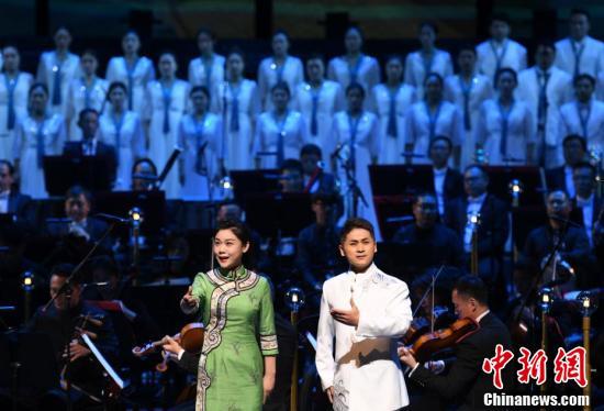 京剧演员和交响乐指挥者等共同演绎京剧交响套曲。(中新社记者 王刚 摄)