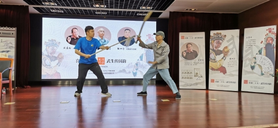 两位嘉宾和主持人就武戏的传承与创新各抒己见,聊得热火朝天,在谈到各种技巧功法的时候,三位京剧艺术家还拿起了活动现场的道具,当场展示了挥鞭耍棍、舞枪弄棒等武生技巧,这些简单的道具在三位京剧艺术家的手中,立即展现出了不一样的魅力,让现场观众对戏曲武生的技艺功法都惊叹佩服。刘连伦老师强调武生艺术是非常高深的技艺,它不仅是从事武生行当的演员需要学习和钻研的,其他的行当演员也有必要学习一些武生的技巧和知识,就连一些旦角的角色在表演的时候,也都会借鉴武生的技巧。