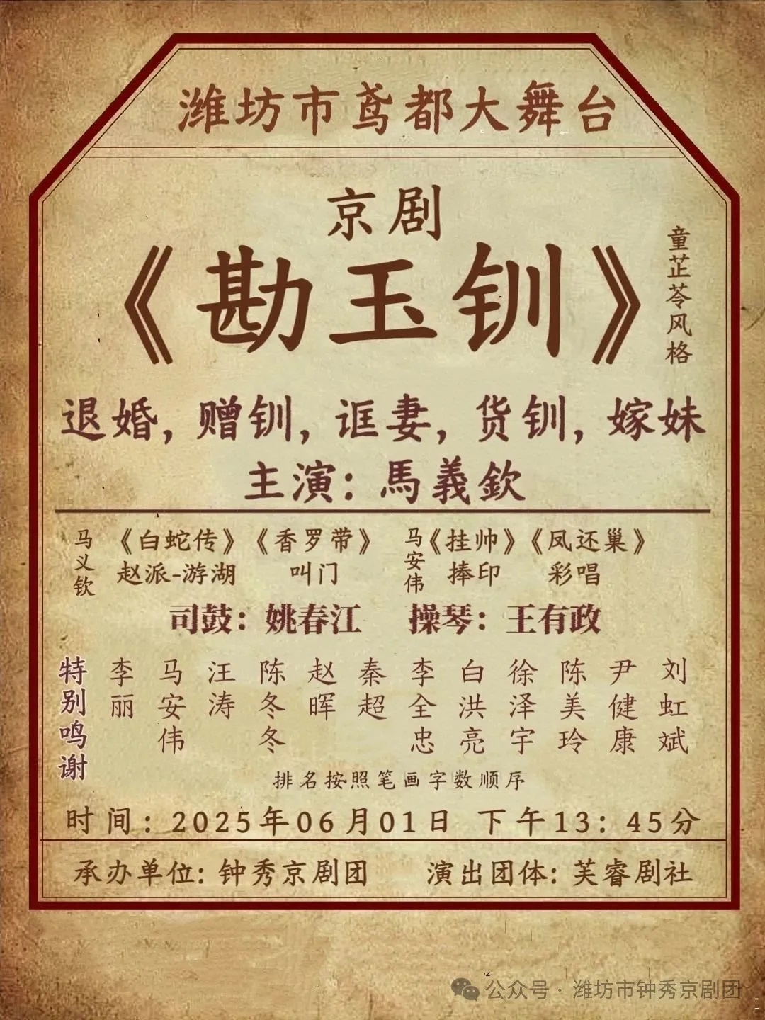 欢迎济宁梅派名票马安伟做客潍坊鸢都大舞台,给大家呈现精彩节目。
