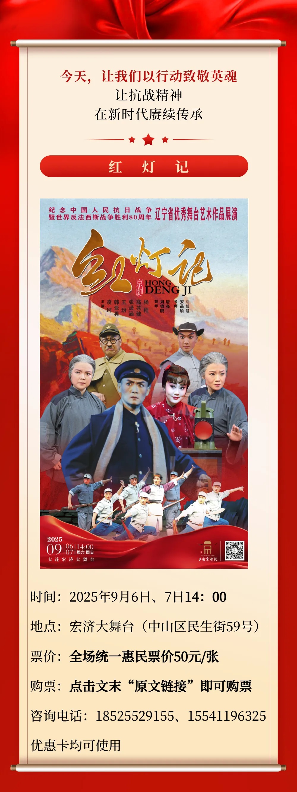 大连京剧院9月6日7日京剧《红灯记》纪念抗战胜利80周年