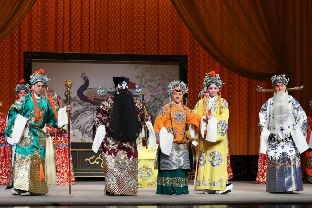 如此“刚柔并济”的裘派美学贯穿全剧:《赤桑镇》中,她唱述嫂娘恩情时醇厚沉郁,流露难得柔情;《遇皇后》里,则如雷霆劈霄,毅然决然为正义发声;《打龙袍》中,她兼具智慧与刚正,面见圣上据理力争,终迎大团圆的结局。程佩洁充分发挥裘派女花脸特有的表现力,在功架与唱念中融入细腻情感,将包公的威严、挣扎、悲悯与决绝层层剖开,既展现出这位铁面判官的威严凛凛,更具动人的人性温度,引得观众阵阵喝彩。