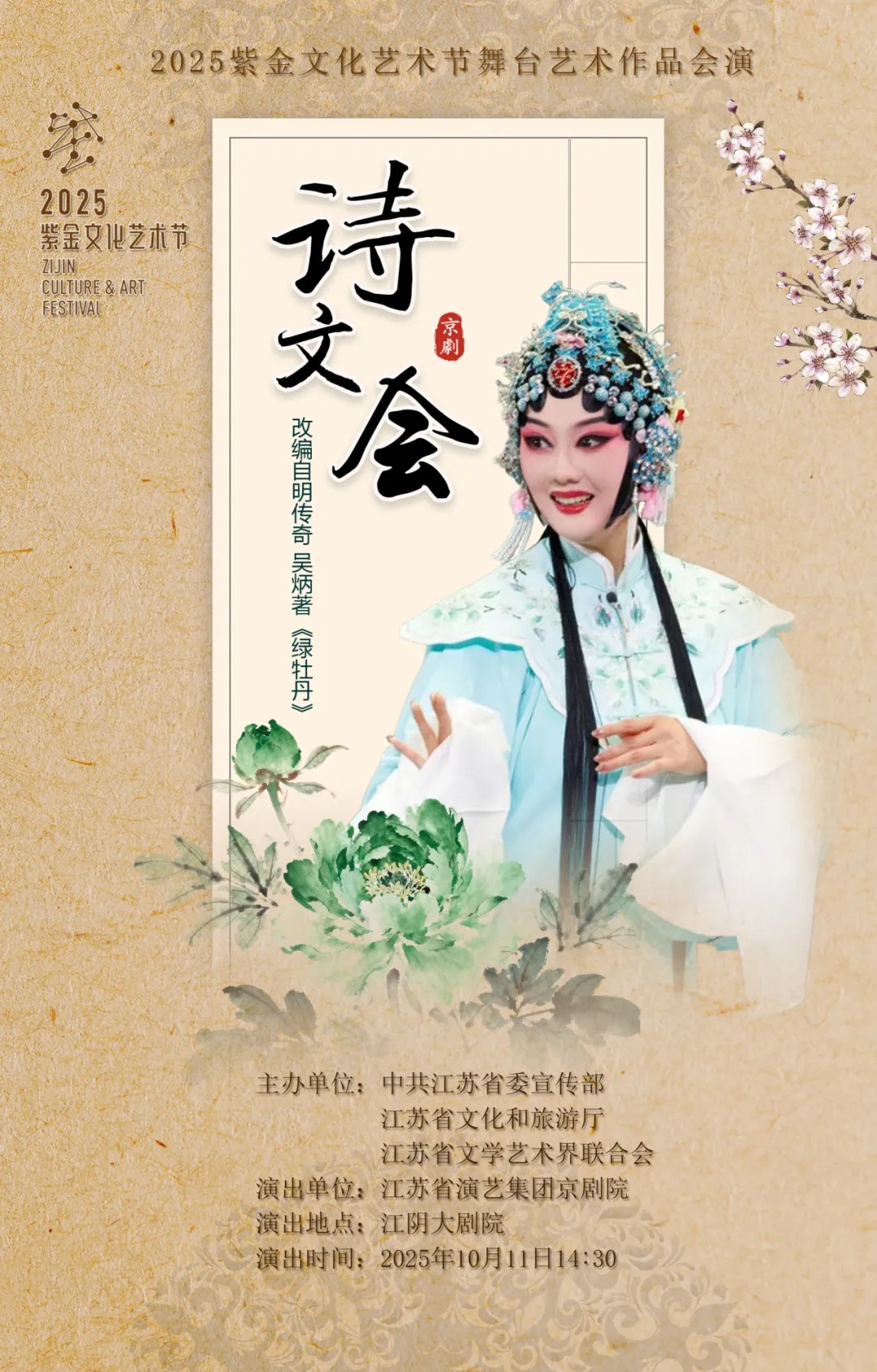 由江苏省委宣传部、省文旅厅、省文联联合主办的这场文化盛宴,即将迎来江苏省演艺集团京剧院的经典复排京剧《诗文会》。作为入选2025紫金文化艺术节舞台艺术作品会演的优质剧目,该剧将于10月11日登陆江阴大剧院,用传统唱腔碰撞当代审美,更有以女主角张婷为代表的实力主演阵容加持,给大家带来不一样的京剧体验。