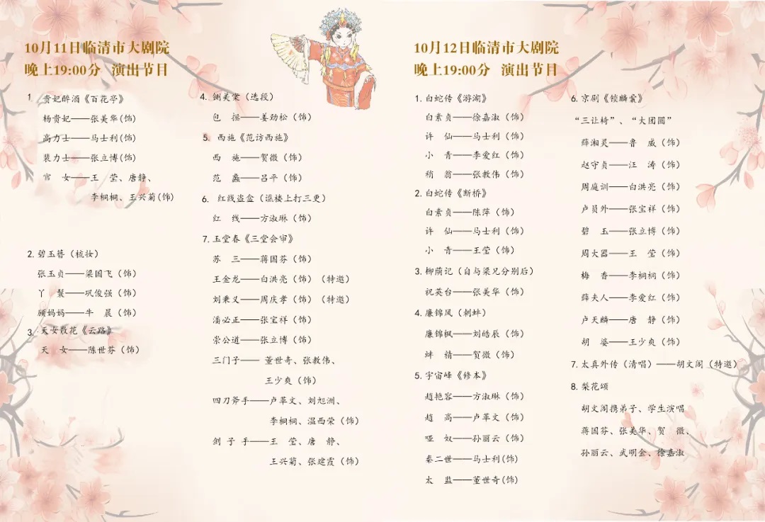 “汇聚名家力量、传承京剧经典”由中共临清市委宣传部、临清市文化和旅游局主办,中国梅派京剧爱好者联谊会、临清市京剧团承办的全国京剧名家名票(临清站)展演活动,于2025年10月11日、12日晚7:00在临清剧院开演。此次展演活动不仅集结了全国范围内的京剧名家与优秀票友,更依托临清本土的京剧文化根基,旨在通过专业舞台呈现,让传统京剧艺术焕发新活力,为当地及周边观众搭建近距离感受国粹魅力的平台,推动中华优秀传统文化在基层的传承与普及。活动期间,观众将有机会欣赏到名家名票带来的经典选段与精彩演绎,沉浸式体验京剧艺术的独特韵味。