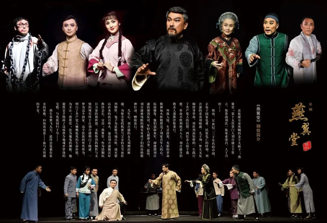 在亮相第十四届中国艺术节前,《燕翼堂》将于10月12日在梨园大戏院演出,回馈广大山东戏迷朋友的支持和关注。谨以此剧致敬为民族解放事业英勇献身的革命先烈,弘扬伟大抗战精神。敬请莅临见证这场融民族气节与艺术神韵于一体的戏曲盛典,在铿锵锣鼓与婉转皮黄中感受穿越时空的精神震撼,共同传承永不褪色的红色记忆。京剧《燕翼堂》取材于沂蒙山区一个有着近三百年历史的封建家族,讲述燕翼堂第十五代掌门人刘合浦在家族早期共产党人刘晓浦、刘一梦“宁可站着死,绝不跪着生”的精神引领下,以民族大义为重,从“明哲保身,中立求存”转变为坚定的革命乡绅,带领家族追随共产党、为革命毁家纾难的动人故事。