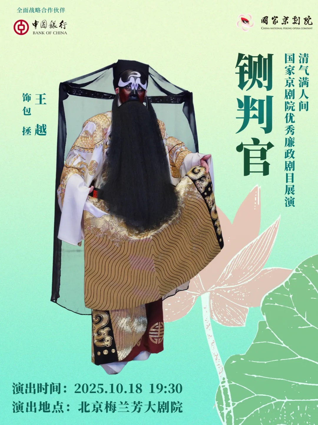 “扶大宋锦华夷赤心肝胆,为黎民无一日心不愁烦”——一句裘派经典唱段,穿越百年仍振聋发聩。10月18日,国家京剧院清气满人间——优秀廉政剧目展演京剧《铡判官》将在梅兰芳大剧院上演。一级演员王越领衔,以铁面无私的“包青天”形象,为观众带来一场跨越阴阳的正义审判,让廉洁清风浸润人心。
