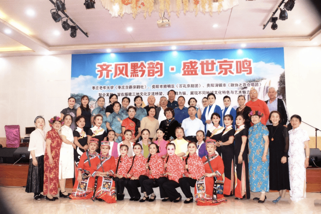 10月17日上午9点40分,红枫湖畔的度假村舞台上,京胡悠扬,掌声雷动,由“齐风黔韵·盛世京鸣”三地京剧联谊汇演在此拉开帷幕。该活动是由山东枣庄老年大学《枣庄古薛京剧社》、贵阳市南明区《百花京剧团》、贵阳清镇市《政协之声合唱团》联合发起,旨在搭建三地文化交流桥梁,以京剧为媒,展现不同地域文化特色与艺术魅力,三地演职人员齐聚一堂,以国粹为媒,奏响跨越山海的文化交响。