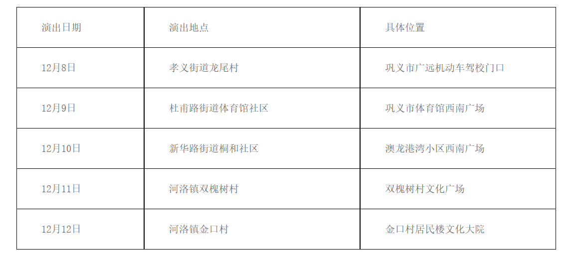 盛宴已排期,好戏连台!请您收好这份详细的演出日程表,选择方便的地点前往观赏:温馨提示: