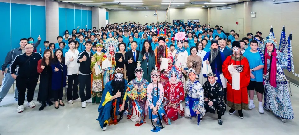 11月26日,演出团走进郑观应公立学校。面对中学生,危佳庆以轻松活泼的讲解方式,将深奥的艺术理论转化为生动有趣的知识点。孩子们时而为精彩武戏惊叹,时而陶醉于优美唱腔,在互动环节更是踊跃参与。尤其令人惊喜的是,两位同样热爱京剧的同学主动登台,演唱了京剧唱段,赢得现场阵阵掌声。