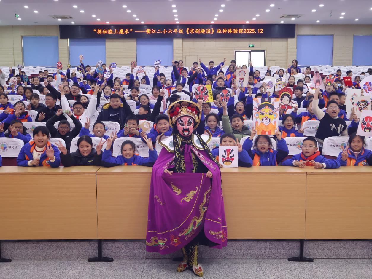 “蓝脸的窦尔敦盗御马,红脸的关公战长沙……”伴随着熟悉的京剧唱段余韵,一场别开生面的川剧变脸表演,近日在衢州市衢江区第二小学报告厅精彩上演。本次活动特邀学生家长徐兴宝进课堂,将课本里的戏曲文化从纸面搬到了学生眼前。
