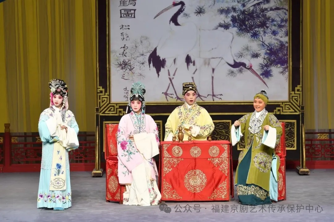 本场演出的亮点,是李海宁、腾皖鲁、师艺璇、金绮文四位我院花旦演员联袂演绎红娘,四位演员各有风采。我院二级演员李海宁功底扎实、嗓音甜美、韵味醇厚;青年演员腾皖鲁扮相靓丽、表演灵动;青年演员师艺璇表演中规中矩;青年演员金绮文活泼俏皮,表演也可圈可点。四人同台接力、各展所长,让观众沉浸式领略红娘的多面魅力,也展现了福建京剧院荀派艺术的薪火相传与青春力量。当晚,剧场内座无虚席,戏迷们或凝神细品、或轻声跟唱,老戏迷沉醉于荀派韵味,年轻观众被鲜活的人物与动人的故事打动。“一封书倒做了婚姻媒证”“小姐你多丰采”等经典唱段响彻剧场,现场观众也在梨园雅韵中,共度了一段团圆美满的时光。