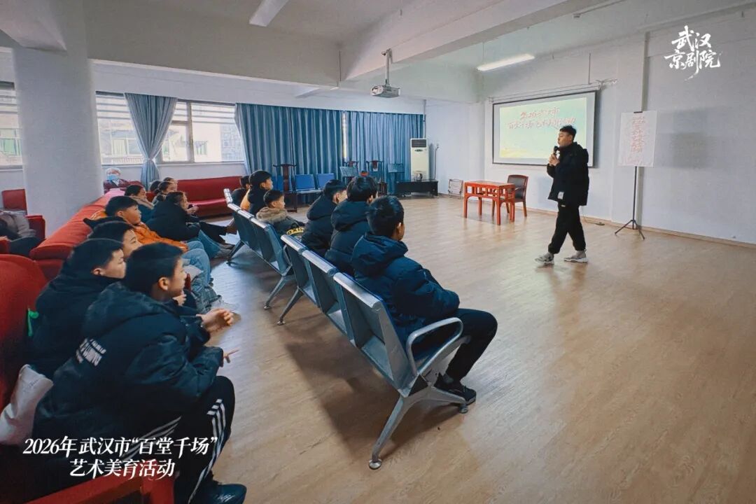 2月8日上午10:00,由武汉市文化和旅游局主办的2026年武汉市“百堂千场”艺术美育活动正式启动,全市20个艺术美育课堂同步开讲。作为本次活动的重要参与单位,武汉京剧院受邀加入“艺术美育合伙人”阵营,由我院优秀青年演员吴阳(景中)领衔开讲京剧美育第一课,以沉浸式教学让市民零距离感受国粹京剧的独特魅力,为江城艺术美育盛宴添上浓墨重彩的一笔。