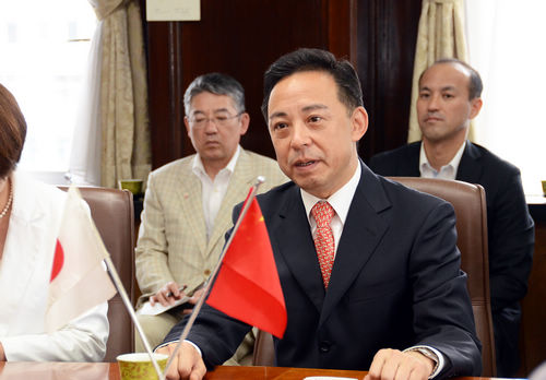 当日下午15:30分,于魁智副院长、李胜素团长在中国人民对外友好协会季伟副主任、高慧女士,关西地区民音负责人数矢先生的陪同下拜会了和歌山县知事仁坂先生及日方有关领导。双方进行了亲切的交谈并互赠纪念品。于魁智副院长代表中方人员致辞,他表示赴日演出团一行将沿着梅先生的足迹,继承他开创的中日友好精神,以文化交流继续为增进中日两国人民友谊而努力。和歌山县知事仁坂先生表示了对演出团到来的热烈欢迎,并极其期待当晚的演出,表达了对演出团赴日传扬京剧艺术的感谢。