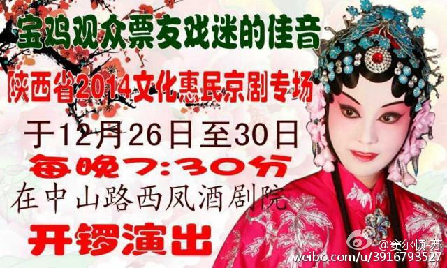 在2014年的岁末,陕西省京剧院为宝鸡观众送去五场大戏,京剧人与宝鸡民众一起迎新年。这次活动对于陕京人而言,虽然辛苦,但是非常有意义的。宝鸡戏谜朋友们,陕京人准备好了!