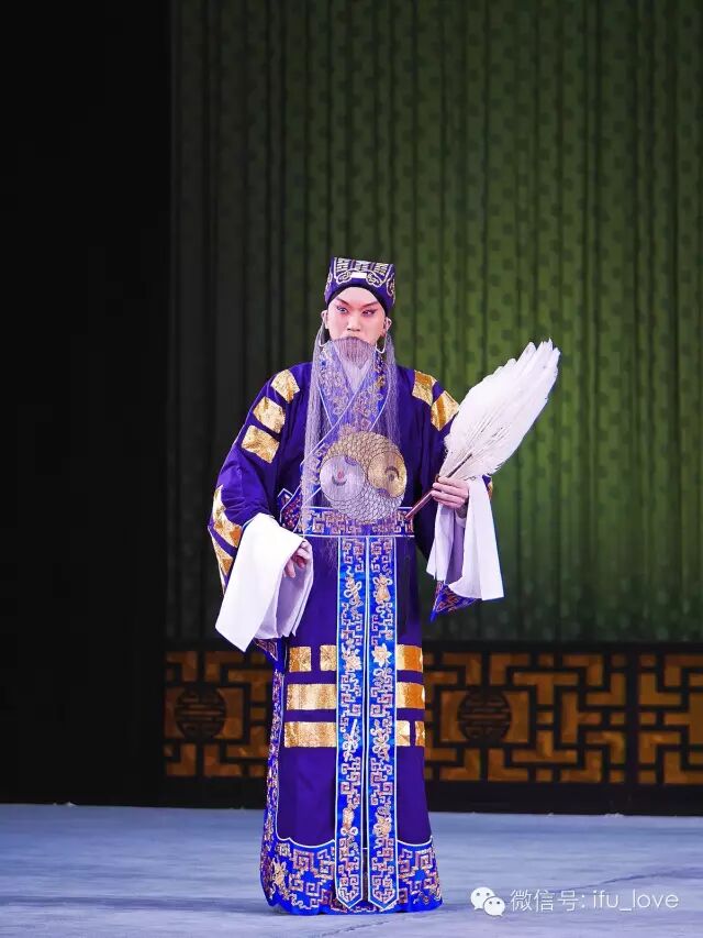 四武将起霸,八龙套上场,在【大开门】升帐音乐之后,就是诸葛亮的登台。此时的诸葛已是中年,身为一国丞相,不同于一般老生演员登场,尽可能避免抖袖、捋髯,身份气度皆在其中。