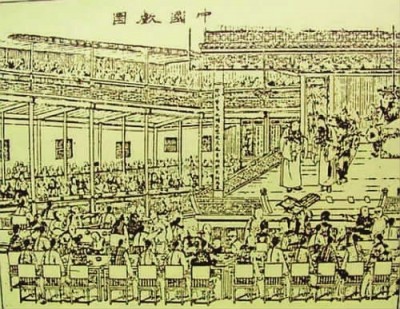 图片说明:清代画家吴友如 《申江胜景图说》 中的“中国戏园”