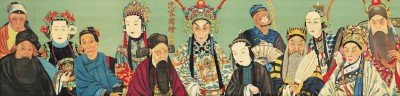 图中人物从左至右依次为:郝兰田、张胜奎、梅巧铃、刘赶三、余紫云、程长庚、徐小春、时小福、杨鸣玉、卢胜奎、朱莲芬、谭鑫培、杨月楼。