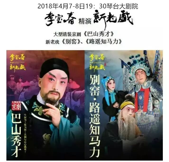 大概是因为观众的喜爱,李宝春近年来汉演出的次数频繁起来。2018年4月7日、8日,他将与台北新剧团再度来汉,带来新编京剧《巴山秀才》和“新老戏”《别窑》《路遥知马力》在琴台大剧院上演。
