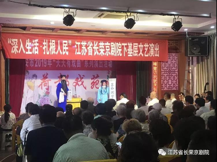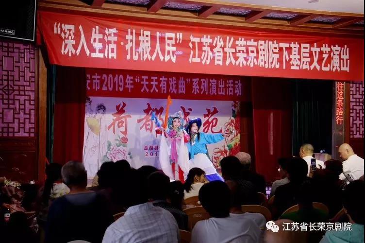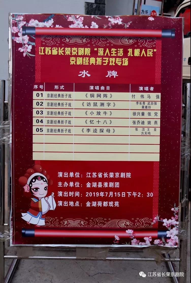 2019年7月15日下午2:30,江苏省长荣京剧院来到金湖“荷都戏苑”为金湖的戏迷观众带来了一场“经典国粹大餐”。现场观众座无虚席,掌声热烈,虽然是在炎热的夏天,现场戏迷热情高涨,叫好声不断。演出结束后金湖的戏迷票友现场也学唱了几段,赢得一阵喝彩!