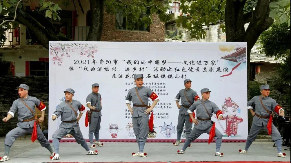 为贯彻落实《国务院办公厅印发关于支持戏曲传承发展若干政策的通知》精神,中宣部、文旅部、财政部《关于印发<关于戏曲进乡村的实施方案>的通知》要求,以及贵阳市落实《关于实施中华优秀传统文化传承发展工程的意见》,结合市委市政府关于贵阳市全国文明城市保牌增位的总体要求,为大力推动贵州优秀传统艺术传承发展,丰富群众文化生活,提升群众文化生活品质,促进非物质文化的繁荣发展,组织戏曲艺术表演团体到乡村、社区、学校为群众、师生演出,推进国家戏曲政策在贵阳市社区、农村地区落地生根,在中共贵阳市委宣传部、贵阳市文化和旅游局及贵阳市旅游文化产业投资集团有限公司的支持与指导下,举办2021年贵阳市“我们的中国梦——文化进万家”暨“戏曲进乡村、进校园”活动之优秀红色京剧展演。