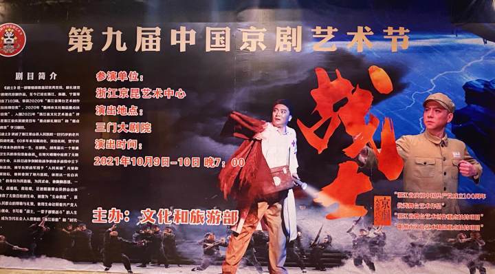 10月9日、10日晚上7点,浙江京昆艺术中心的现代京剧《战士》,在浙江省三门大剧院连演两场,这是《战士》今年的第121场、122场演出,也是入选参演第九届中国京剧艺术节的线下剧场演出。
