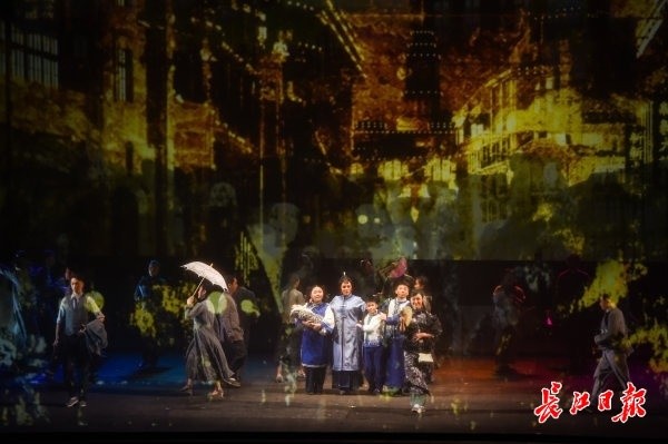 在戏曲舞台上,“跷功”已经极为少见。但为了更好地呈现葛健豪“三寸金莲走世界”的故事,刘子微不仅全程“踩跷”演出,还踩着三寸的跷跳绳、跳康康舞。有传统的技艺,《母亲》更有现代性的表达,简洁而富有艺术感的舞美,交响乐团的伴奏,都尽显汉派京剧的独特魅力。