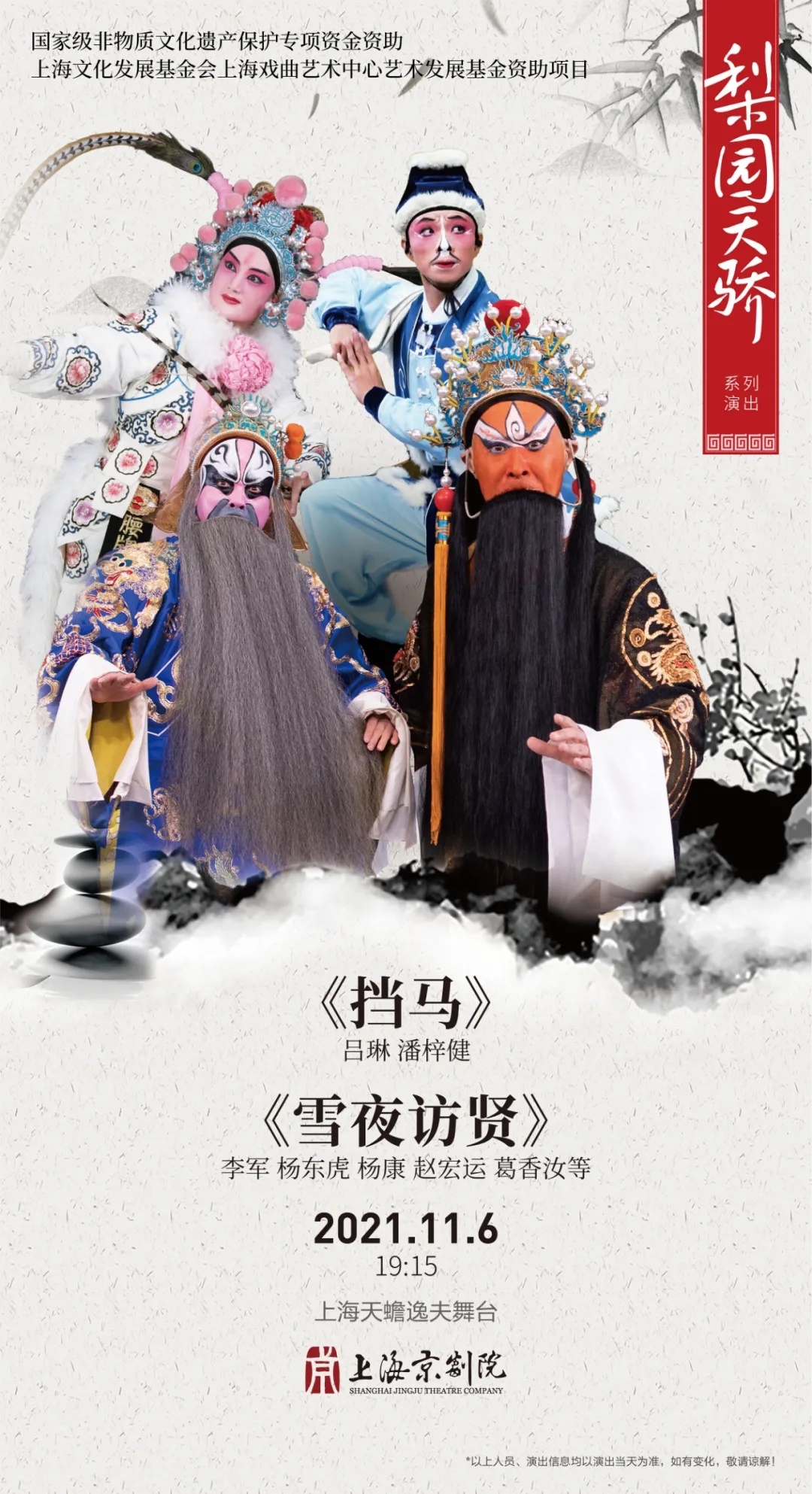 在11月6日这场演出中,还可以欣赏到由吕琳、潘梓健主演的《挡马》。这是一出由武旦与武丑合作演绎的经典武戏,精彩等你来!京剧《雪夜访贤》《挡马》