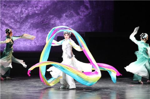 说到梅兰芳,不得绕开的就是京剧艺术。舞台上,古戏台的意象反复出现,也是整个舞台的视觉支撑,十分契合梅兰芳一生唱戏,一生爱戏的形象。在创作过程中,张笛笛听了大量京剧名段,并从《贵妃醉酒》等经典唱段里撷取适合的音型加入其中。同时,为了更加贴近人物角色,剧中梅兰芳的唱段在旋律线条上也融入许多京剧特征。张笛笛表示,剧中以‘戏中戏’的方式展现梅先生复出时的戏曲演出,以及他在京剧艺术上的创新和传承,“包括兰花指以及他舞台上的身段,都以剪影或者舞蹈化的形式展示出来,在让剧迷也过了戏瘾的同时,也消弭了中西音乐元素的界限,实现音乐剧与国粹艺术高度融合。”