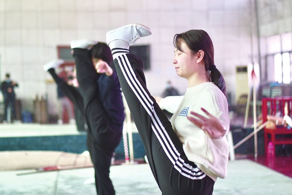 前后两个多小时,一个完整的旦角演出装扮才能完成。在没有演出的时候,这些年轻的京剧演员们也不敢松懈。楼上的排练厅,十名京剧演员正在进行日常训练,压腿、趟马、三两成组练着对子……虽然他们中的很多人都已经登台演出很多年了,可是对于基本功,那是一天都不敢放下。每当看到排练厅内刻苦练功的年轻演员们,张贺芳都会露出欣慰的笑容。她说,一个京剧演员从幕后来到台前,离不开勤奋练功。“四功五法”是必须,其次还有水袖功、髯口功和翎子功等。要想成为一名京剧演员,热爱和坚持是不可或缺的。