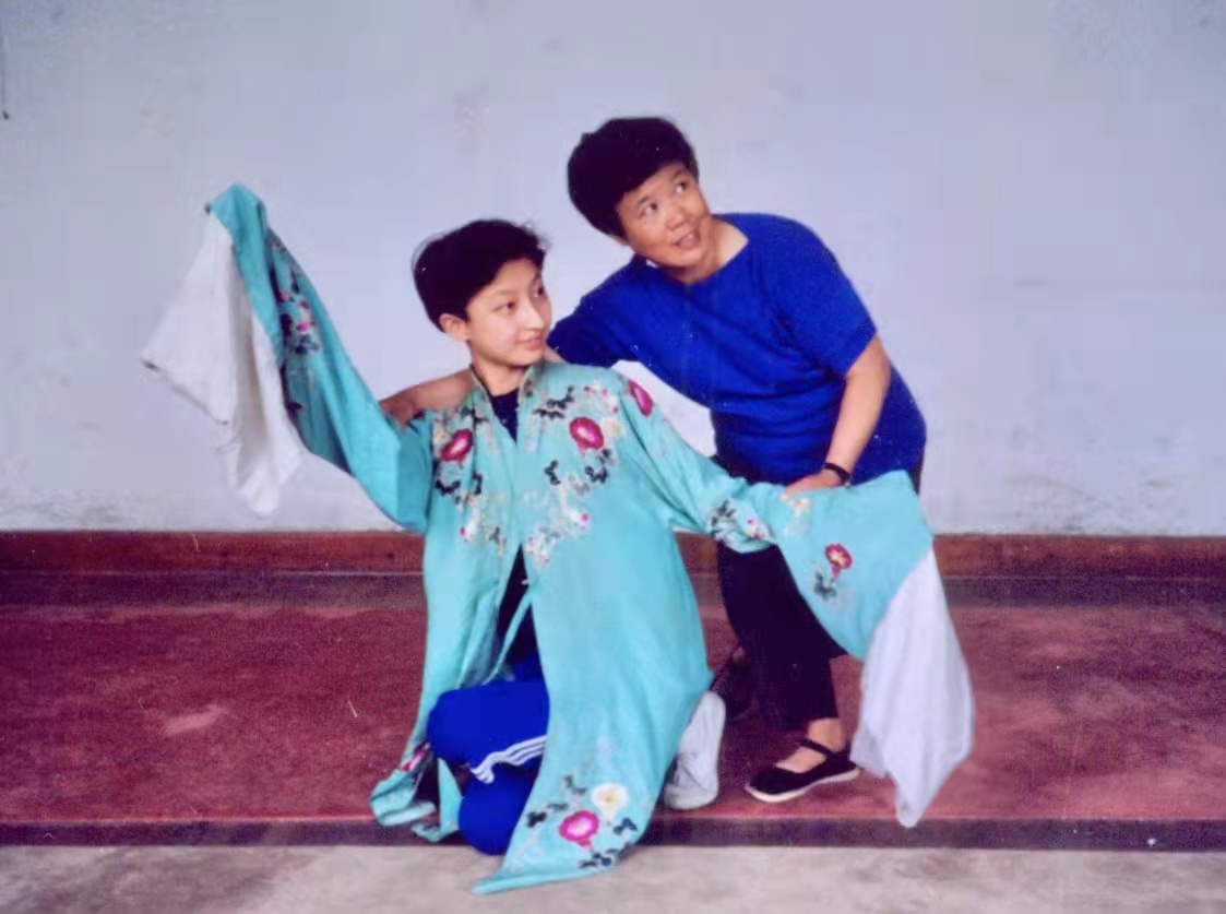 郭玮11岁考入北京戏校预科班,两年后转为“京表90班”的一名正式生,其后又坐科七年,在校度过了九年的学习时光。戏校带给了郭玮优厚的教学环境,并让她从一进校就遇到了恩师李文敏。作为“外行子弟” 的郭玮对于学戏本是一张“白纸”,开始连小嗓都不会喊,教学经验丰富的李老师独出机杼,按照自己严谨、规范的教学思路,运用程派的艺术方法,从发声、吐字的唱念基本训练入手,一字一腔,一招一式,循循善诱,务求规范,将程派艺术的科学规律与基础教学训练有机、有效地结合起来。郭玮学的第一出戏是《贺后骂殿》,这是一出传统的开蒙戏。李老师说,因为这出戏的唱腔【二黄】板式全,尤其是张口音多,对旦角儿的发声发音训练有针对性。而后又学《三击掌》,因其【西皮】的板式全,且念白多而难······如此,年复一年,李文敏的教学理念在在郭玮身上结出了显著的成果。