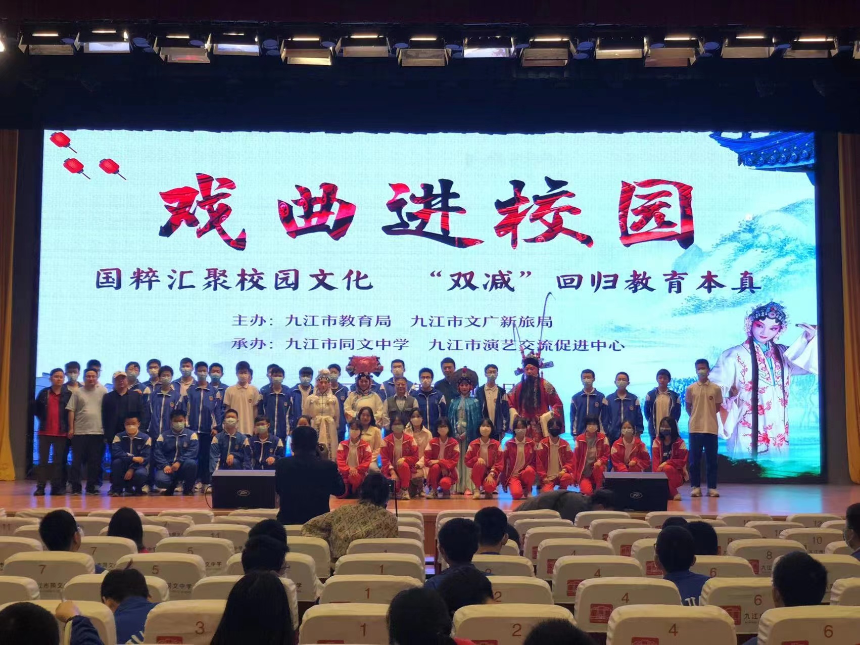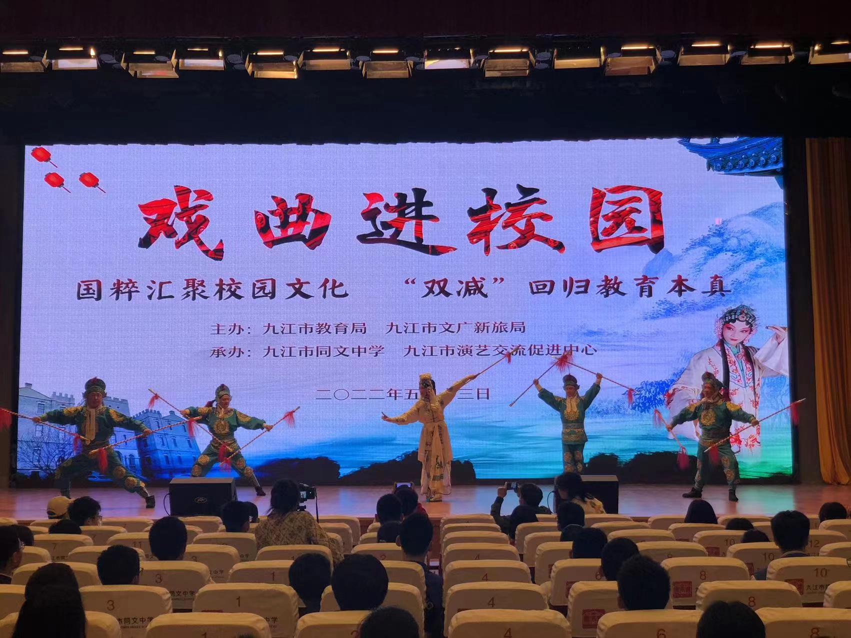 为弘扬国粹,传承戏曲经典,让学生近距离接触和了解戏曲文化,感受中华优秀传统文化的博大精深。5月13日下午,由九江市文广新旅局、九江市教育局联合主办,九江市演艺交流促进中心、九江市同文中学承办的“国粹”传承——京剧表演鉴赏公益课堂活动在同文中学博雅馆举行。