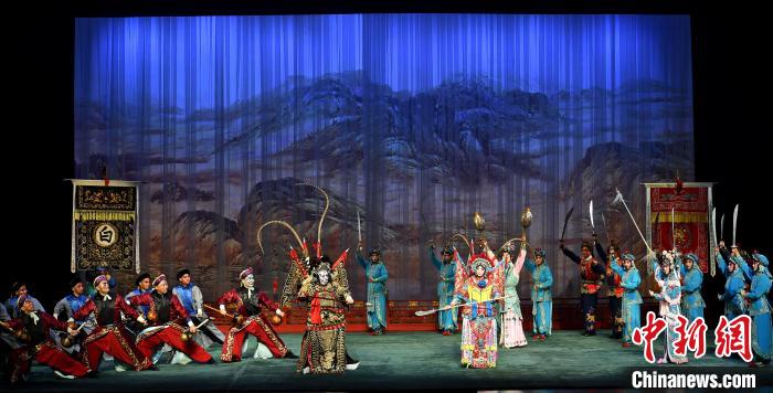 杨家将的故事是京剧舞台上的经典题材,观众们耳熟能详的《四郎探母》《穆桂英挂帅》《杨门女将》等,都是以历史上北宋杨家三代(杨业、杨延昭和杨文广)戍守北疆、精忠报国的真实事迹为原型蓝本。《穆桂英大战洪州》在福州凤凰剧院上演,国家二级演员郑钰饰演穆桂英。 巫晓波 摄