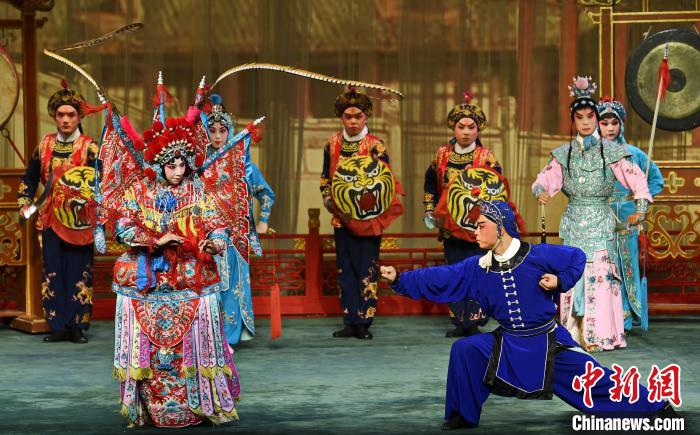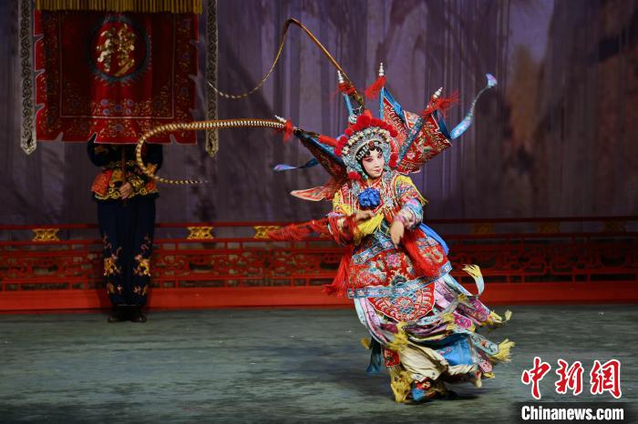 在福建省文化和旅游厅的指导下,2022年6至8月,福建京剧院开展“‘京’彩一夏”京剧传统经典演出季,倾心创作演出更多更精彩的舞台艺术作品,《穆桂英大战洪州》《伐子都》《林祥谦》等精彩大戏轮番上演。创新策划推出更具特色、更有吸引力的文旅融合演出活动,带《真假美猴王》等京剧传统经典、《沙家浜》等京剧红色经典走进景区。《穆桂英大战洪州》在福州凤凰剧院上演,国家二级演员郑钰饰演穆桂英。 巫晓波 摄
