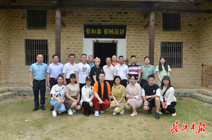 在《母亲》的前期创作过程中,该剧主创曾前往双峰采风。此次“回家”,该剧主演、中国戏剧梅花奖“二度梅”获得者刘子微特意带着青年演员们一起回到双峰。在蔡和森、蔡畅故居,她带着青年演员们找到蔡家兄妹的起居场景,找不同人物的感觉。刘子微说,这次“回家”是一次感恩之行,2020年她首次到双峰采风,在崎岖的山路上找到了“小脚老太”的感觉。“在剧中我全程踩跷演出,又是跨行演老旦,难度非常大,是葛健豪这个人物给了我坚持下来的勇气,让我不惧任何困难。现在《母亲》已经有了大剧院、小剧场版,演出近40场,我觉得应该带着青年演员们‘回家’来看一看,让他们也有更切身的体会。这次既是对革命先辈们精神的传承,也帮助他们更贴近这些人物。”《母亲》主创人员在蔡和森、蔡畅故居前合影。夏俊俊 摄