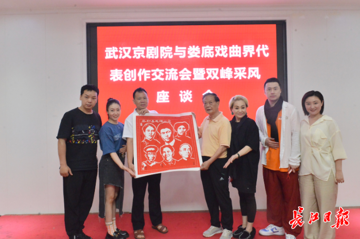 娄底市文艺界代表向《母亲》剧组赠送剪纸作品《光辉的一家》。夏俊俊 摄