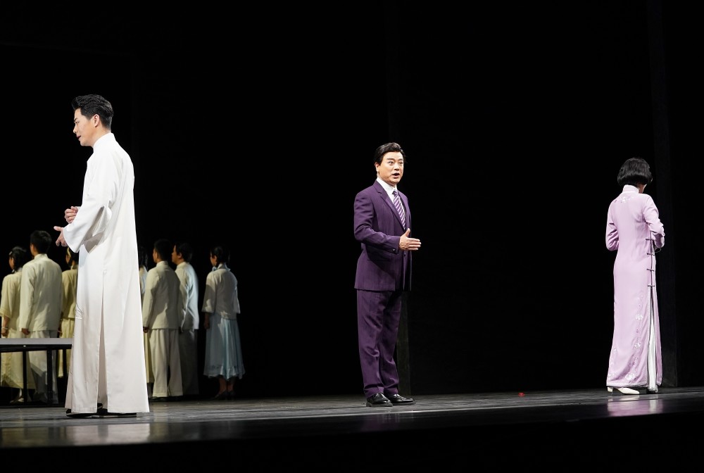 由优秀青年武生演员周恩旭饰演的高君宇,作为石评梅的革命爱人与精神向导,是一名甘愿为光明和理想献出生命的战士。剧中所化用的高君宇自题言志诗,淋漓尽致地展现出了其崇高思想和战斗激情,而以石评梅口吻吟诵,更为二人矢志不移、生死相随的革命追求做出了完美诠释。