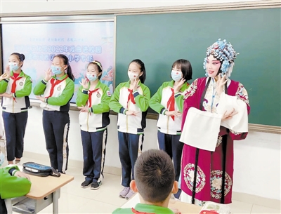 由河西区文化馆专业干部、天津青年京剧团优秀青年演员组成的文化小分队,近日先后来到河西区名都小学和河西区湘江道小学,讲解京剧艺术,指点学生表演。