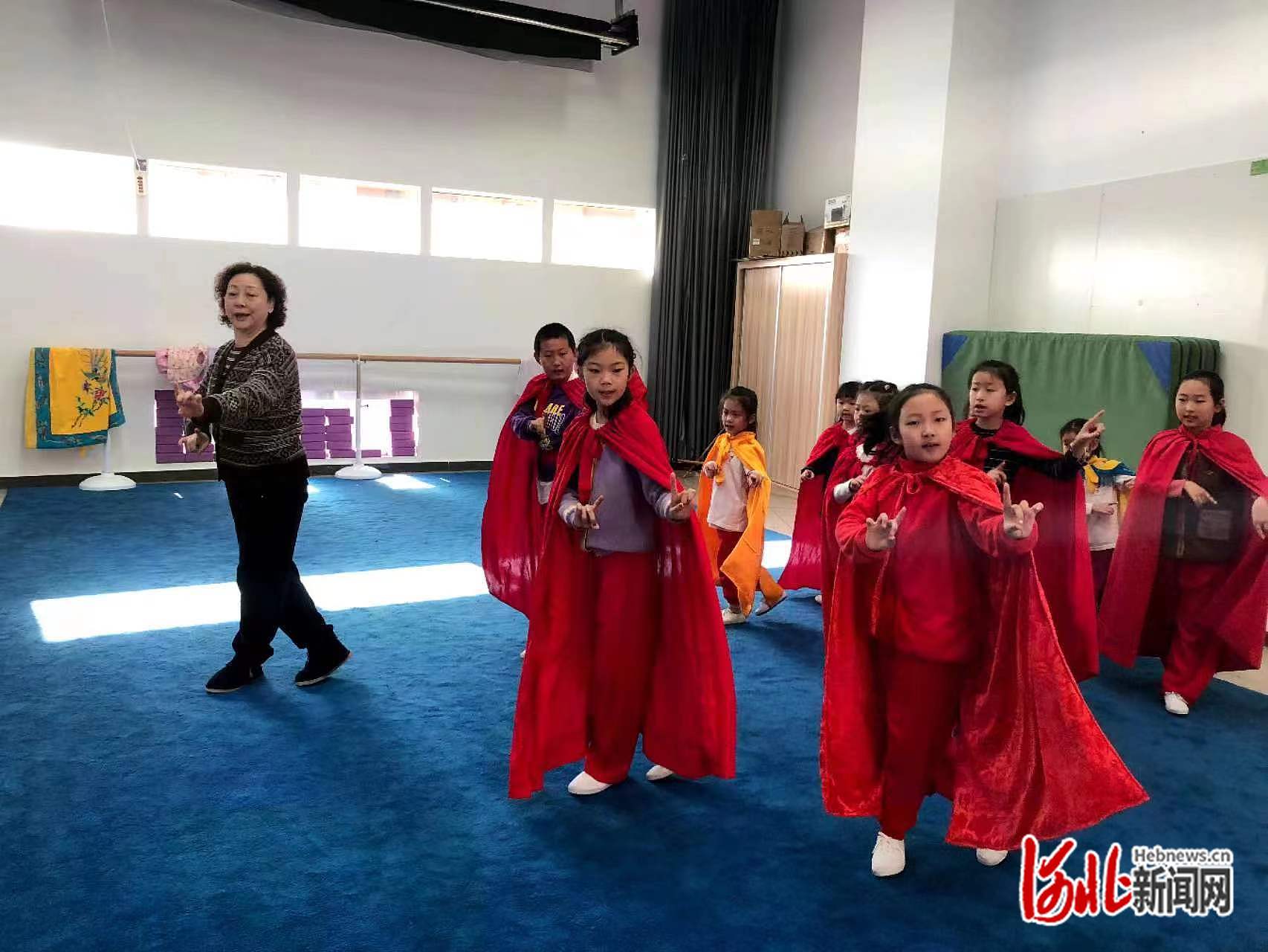 老师带领孩子们学戏。