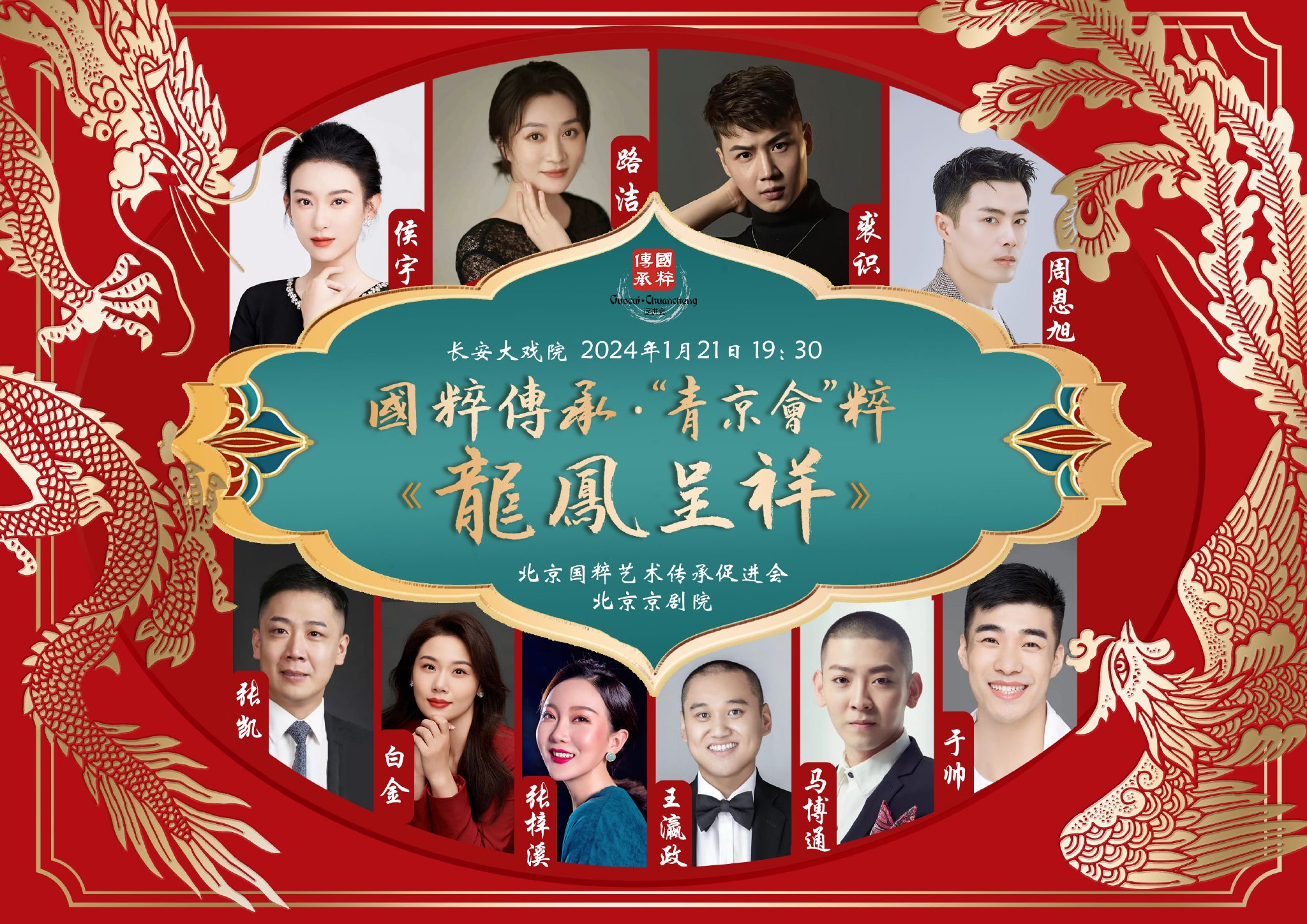 由北京国粹艺术传承促进会、北京京剧院共同主办,国粹传承·“青京会”粹《龙凤呈祥》专场演出将于2024年1月21日19:30在长安大戏院隆重上演。《龙凤呈祥》是国粹经典名剧,此次演出意义非同凡响,国粹传承不言而喻,“青京会”粹代表了三个方面含义,所谓“青”是传承发扬京剧艺术的青年才俊,“京”是指独步剧坛、人才辈出、享誉世界的北京京剧院,“会”是以国粹传承为己任、为弘扬京剧艺术不遗余力的北京国粹艺术传承促进会。青、京、会,共同举办此次大合作演出,可谓美好,谓之“粹”!《龙凤呈祥》作为经典名剧,不仅场面宏大,情节生动,行当齐全,阵容整齐,生旦净丑皆有用武之地,既是一出凭借美好团圆的故事和幽默诙谐的桥段,掳获众多戏迷芳心的“吉祥好戏”,也是人们在逢年过节搭台唱戏必点的合家欢式的经典传统剧目。