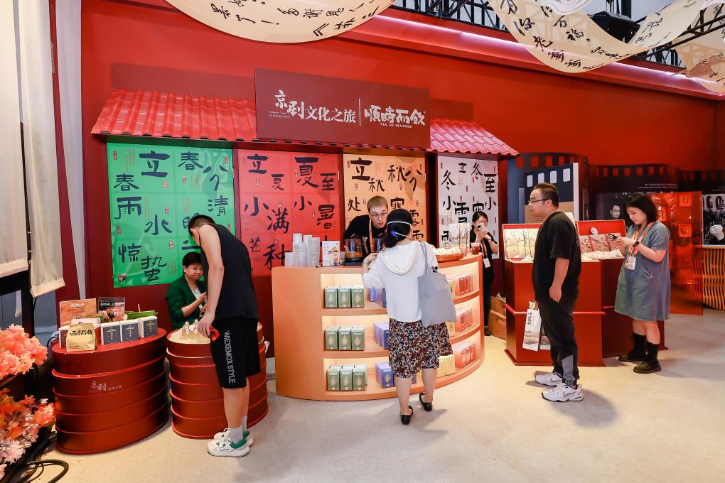 “京剧文化之旅·顺时而饮”展区摆放着以中国传统的时令和国粹中医理念打造的饮品,在满足观众味蕾的同时,展示了传统文化融入现代生活的鲜活图景。