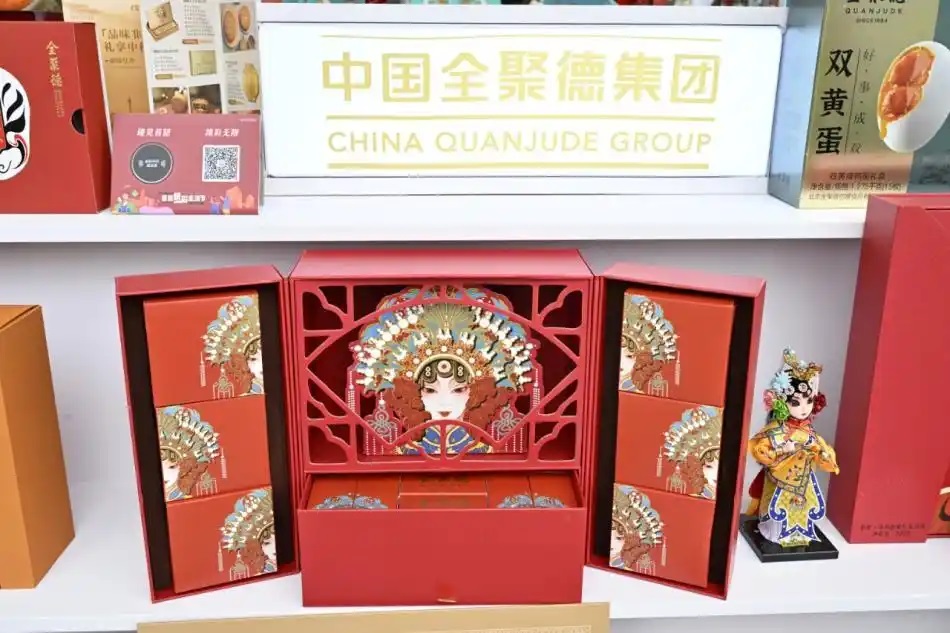 全聚德品牌的月饼,主打的就是“京剧国潮风”。最受欢迎的一款叫“生旦净末”,盒子上印着京剧四大行当的脸谱,打开后每个月饼的造型也呼应着脸谱元素。“本来想做五角形的盒子,装下生旦净末丑五个行当,后来觉得不够实用,就选了四大主角,用完的盒子还能当首饰盒,放小耳钉、项链特别合适。”周延龙说道,还有一款 “锦瑟和鸣”,脸谱设计得更精致,寓意也特别好,适合送朋友、送家人。“我们做月饼不只想卖个口味,更想把京剧这门国粹装进盒子里,让大家吃月饼的时候,也能感受到京味文化的魅力。”