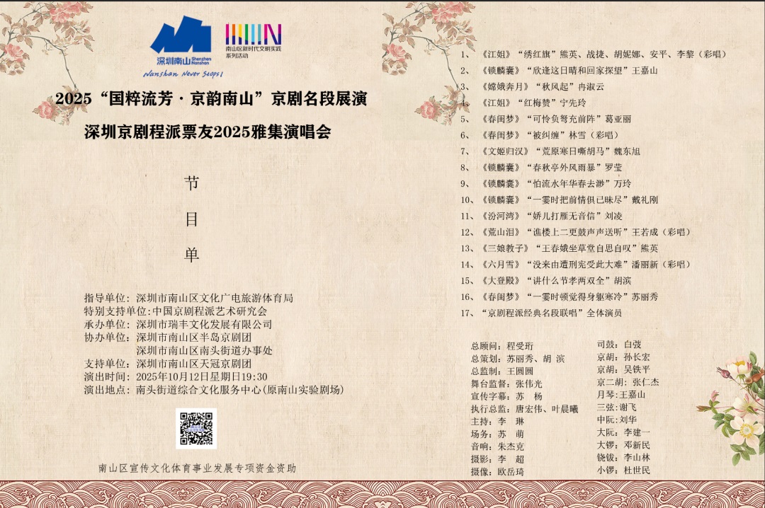 赠票-著名京剧表演艺术家程砚秋嫡孙、中国京剧程派艺术研究会会长程受珩受邀来深参加“深圳京剧程派票友2025雅集演唱会”