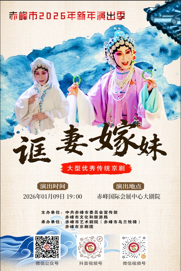 赤峰市2026年新年演出季——大型优秀传统京剧《诓妻嫁妹》今日正式开票!国粹经典、荀派名剧,1月9日赤峰国际会展中心大剧院,邀你在丝竹锣鼓中开启新年文化之旅,门票抢手,欲购从速!