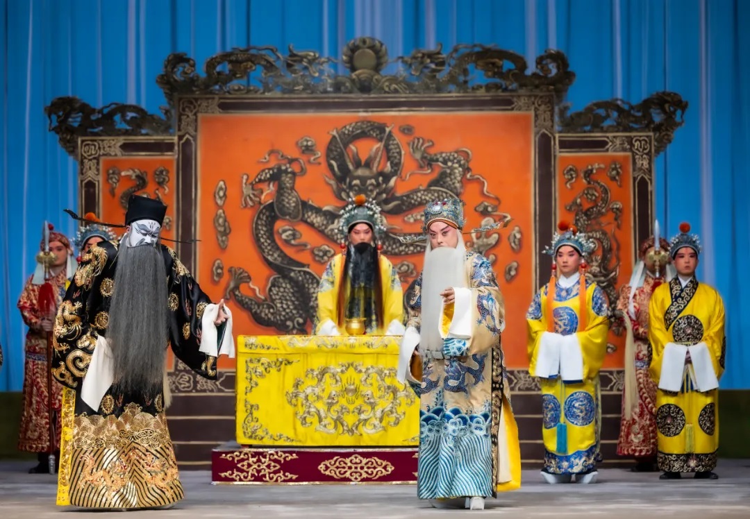 于魁智饰演的寇准沉稳机智,老成持重,同时忠贞无畏。唱腔气韵悠长,情感层层递进,展现寇准的睿智与豪情,完美呈现出人物的忠君为国的良臣品质。郭瑶瑶饰演的佘太君,嗓音高亢,气势磅礴,既显年长者的沧桑特征,又传递沙场老将的厚重感,表现出深明大义与老当益壮的鲜明人物特性。