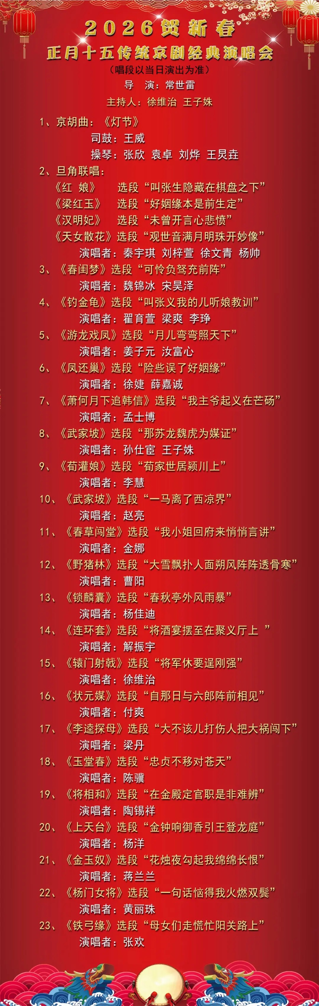 华灯映锦绣 国韵闹元宵|黑龙江省京剧院2026贺新春正月十五演出预告