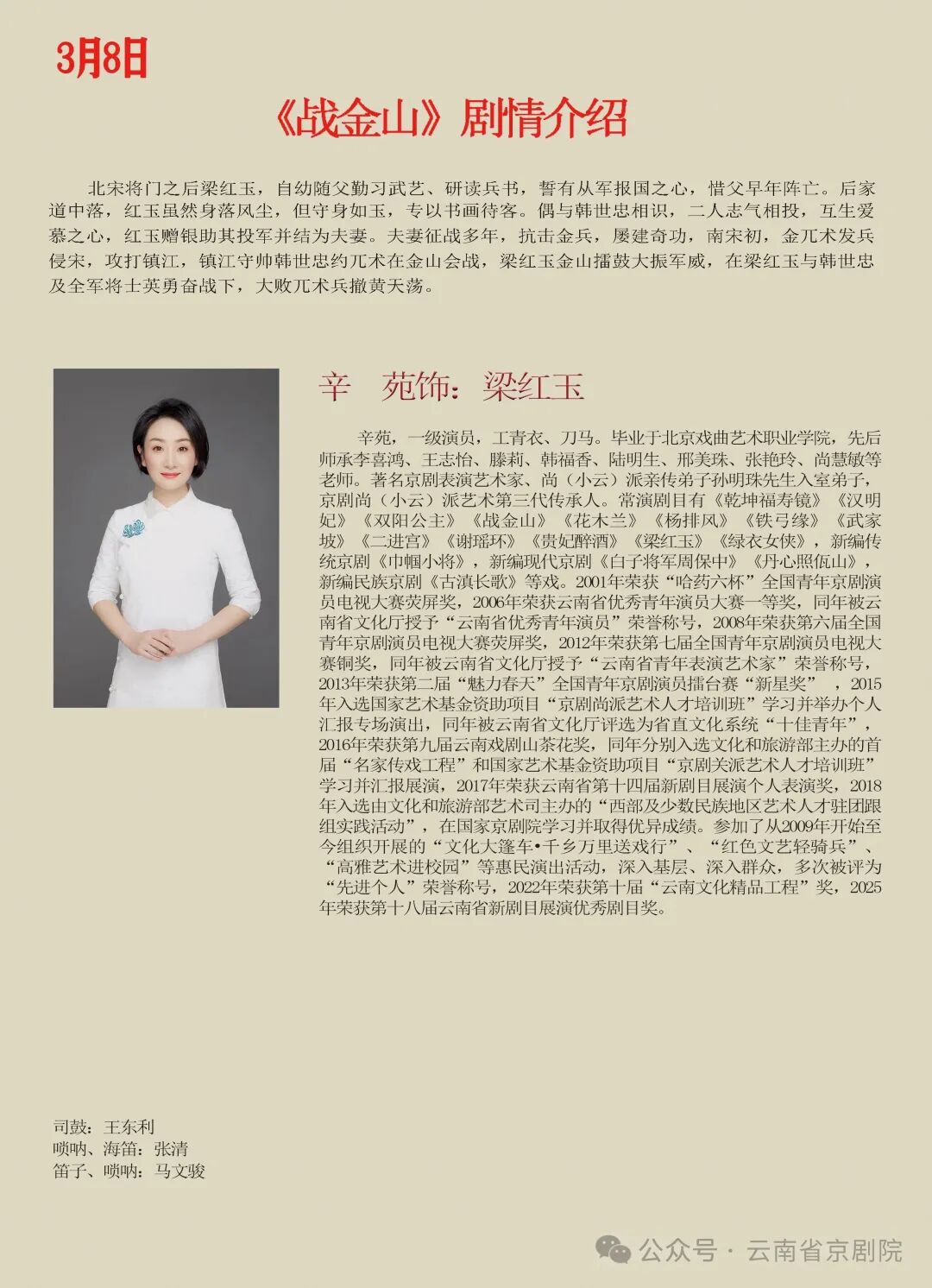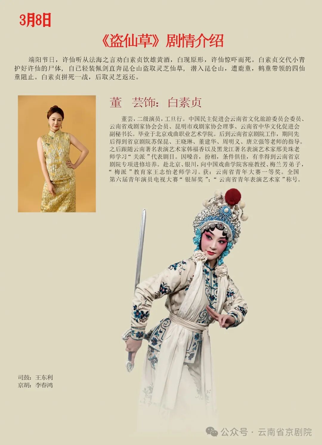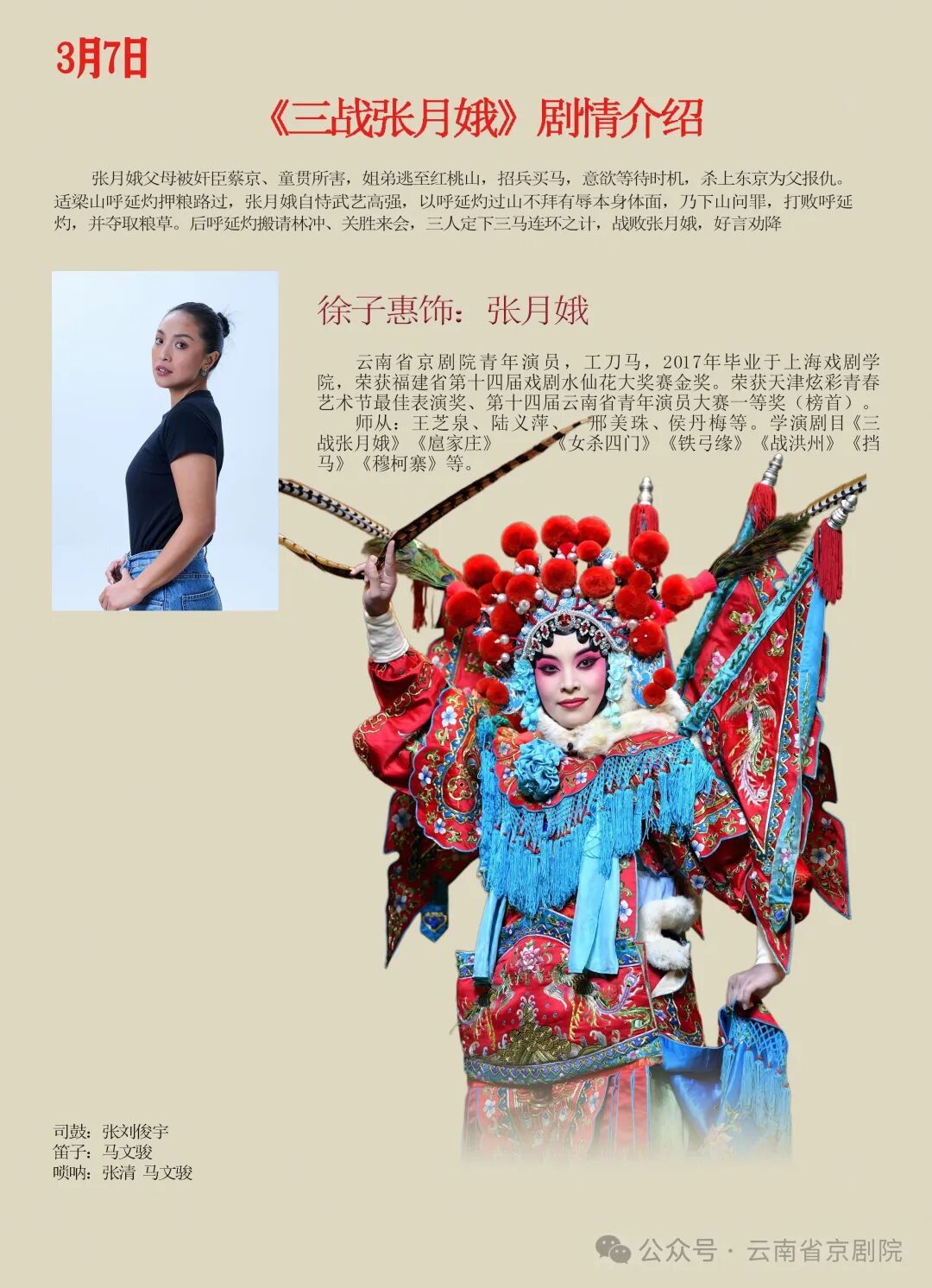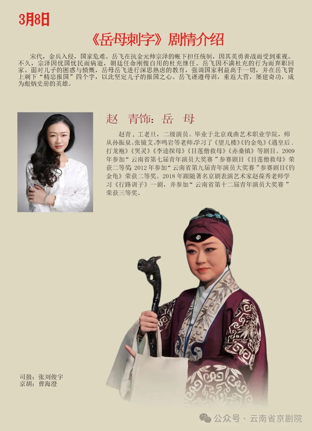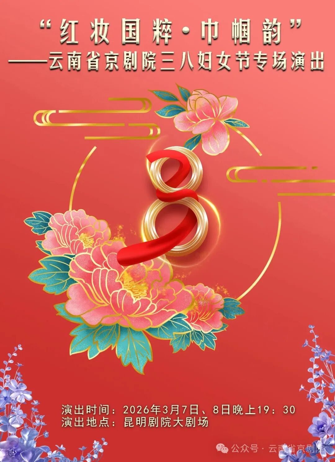 春风送暖,国粹传情。值此三八国际妇女节来临之际,云南省京剧院精心准备的红妆国粹·巾帼韵专场惠民演出即将亮相昆明剧院,以经典京剧致敬巾帼风采。