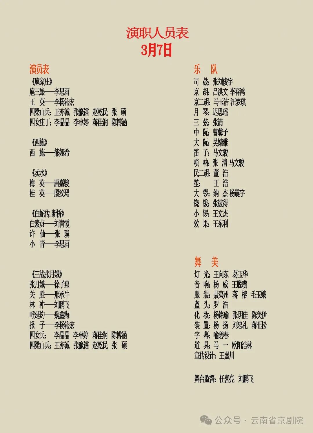 3月7日、8日晚19:30,连续两晚精彩不断。7日上演《扈家庄》《西施》《卖水》《白蛇传·断桥》《三战张月娥》;8日呈现《盗仙草》《太真外传》《岳母刺字》《战金山》。